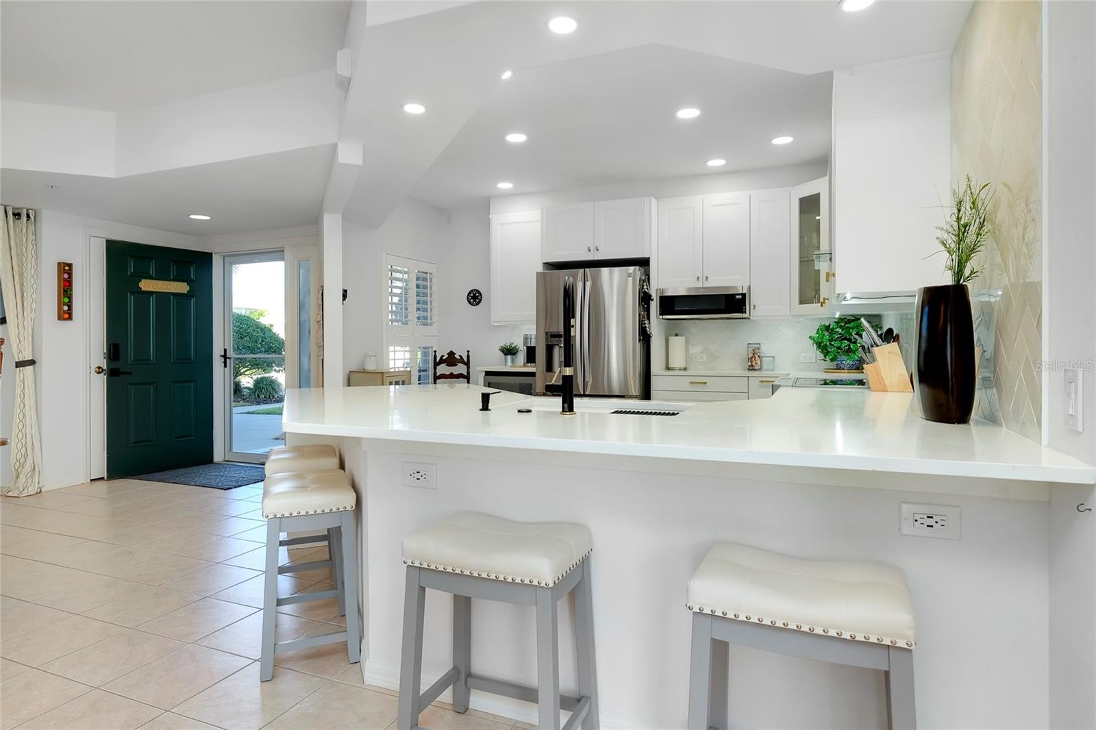 This property is located in a desirable, gated, and quiet cul-de-sac within the Plantation community. This turn-key unit is a spacious 3-bedroom, 2-bath corner unit on the first floor. This home is bright and inviting, featuring wrap-around water views that provide both tranquility and beauty from every angle. The kitchen was beautifully updated in 2022, with a waterfall island, new KitchenAid convection range, KitchenAid dishwasher, low-profile microwave, and a coffee bar above a wine/beverage cooler. The primary suite includes a walk-in closet and a bathroom with dual sinks. The floor plan is split, separating the primary suite from the other bedrooms for added privacy. The HVAC system was replaced in 2019, and the roof is new as of 2023. The property also includes a washer and dryer, as well as motorized, remote-controlled sunshades on the sliding doors, adding convenience. Additionally, there is an enclosed Florida room and an outdoor patio area. The home benefits from north/south exposure, ensuring pleasant light and airflow throughout the day. This property is being offered fully furnished and stocked with essentials, including two large-screen TVs, making it move-in ready. It has also been unaffected by any of the four recent storms in the area. Additional storage is available in both the in-unit storage room with cabinets and the garage. For outdoor enthusiasts, two Raleigh bikes--one for men and one for women--are included. The home has no assessments or CDD fees, enhancing its overall value. The community offers several pools for your enjoyment. As part of the amenity-rich Plantation Golf & Country Club, you can indulge in a variety of recreational, dining, and social activities, all with optional membership opportunities. Enjoy two outstanding 18-hole championship golf courses, 13 Har-Tru tennis courts, 6 pickleball courts, bocce ball, a fitness center, and a junior Olympic-sized pool. Exceptional dining options include a grill room and event spaces, complemented by a dedicated activities director for outings and events. Location is key, and this condo doesn't disappoint! Just minutes from I-75, you are close to downtown Wellen Park, home to the Atlanta Braves' spring training facility--making it a central hub for dining, shopping, and entertainment. To the north, historic Venice Island offers stunning beaches, fishing, walking and biking trails, and a rich cultural scene, all within reach of essential medical facilities. Don't miss out on this exceptional opportunity to own a piece of paradise! Experience the Florida lifestyle you've always dreamed of in this exquisite condo.